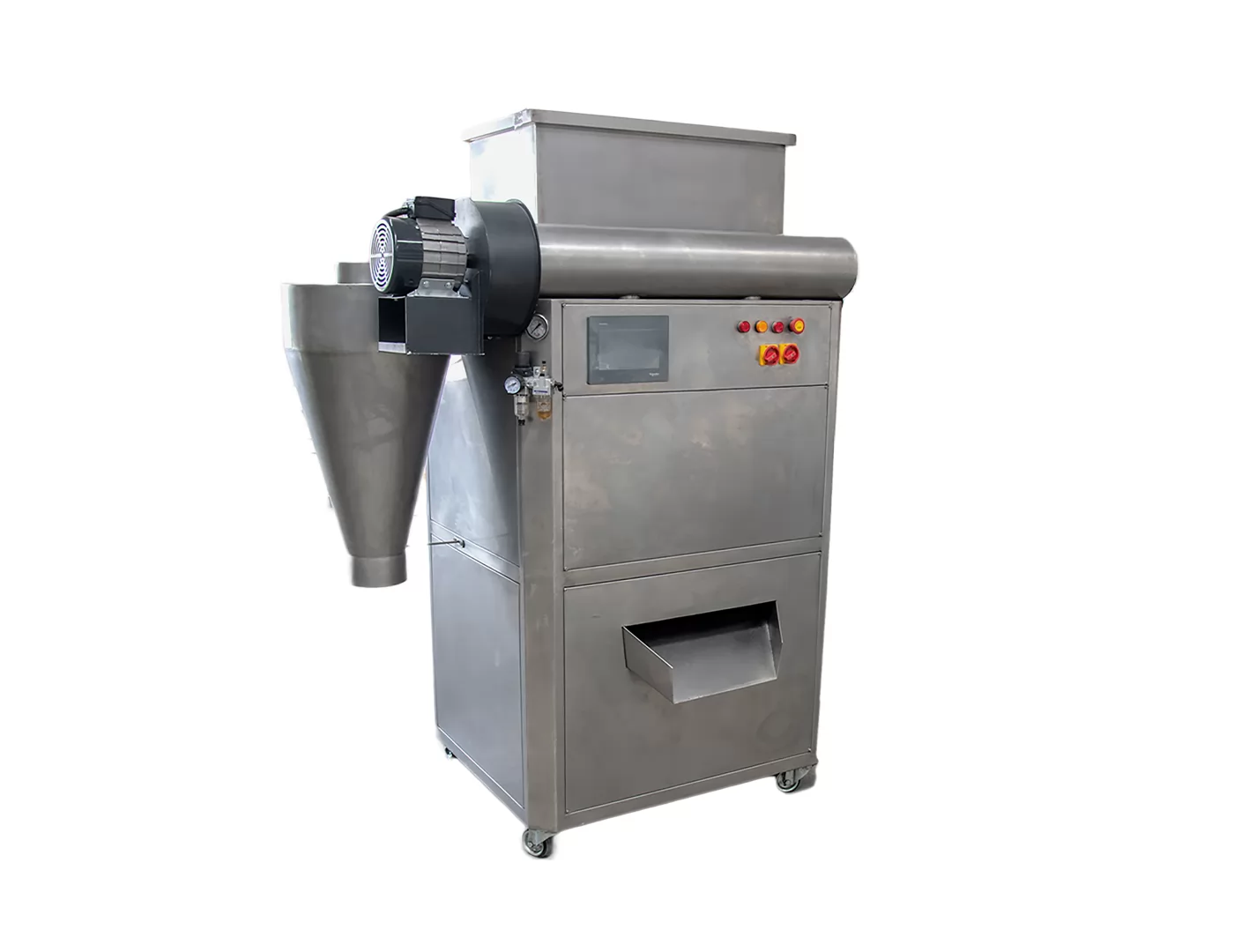 Kuruyemiş İşleme ve Ürün Taşıma Sistemleri Modellerimizden FSM3, kavurma işlemi tamamlanan ürünlerin ideal sıcaklığa getirilerek paketleme öncesinde soyulmasına yarayan sistemdir. Yavaş dönen tambur yapısı sayesinde ürünler zarar görmeden soyulur.
